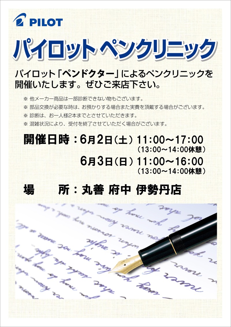 パイロット「ペンドクター」がお持ちの万年筆を無料で診断、調整いたします。