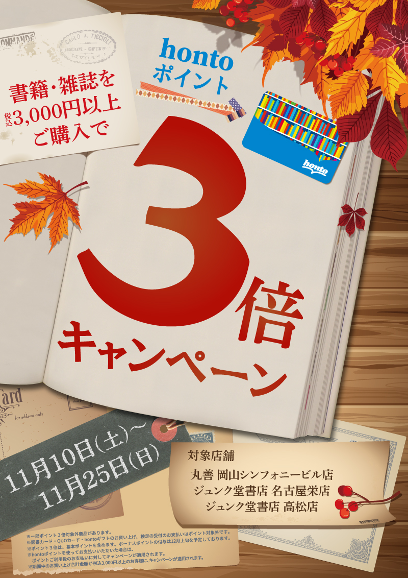 3千円以上で hontoポイント3倍キャンペーン【3店舗限定】
