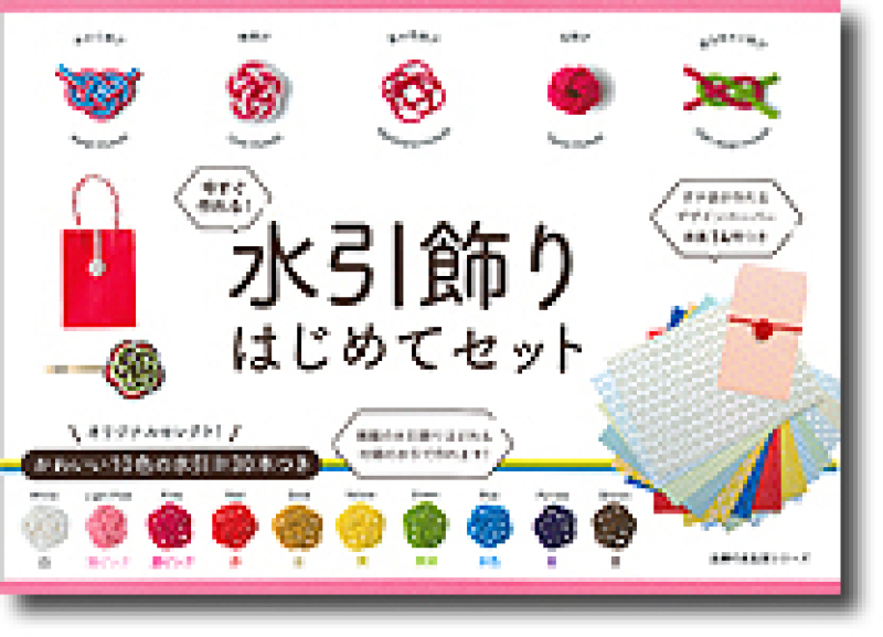 水引の基本を学ぶ講座。本書付録の水引(約90cm)は10色×各3本=30本つきなので、たっぷり楽しめます。
