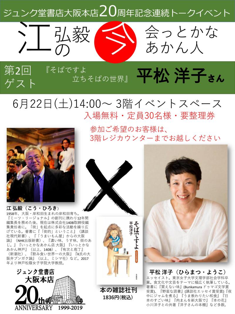 ジュンク堂書店大阪本店 開店20周年トークイベント 第2回 江弘毅さん☓平松洋子さん