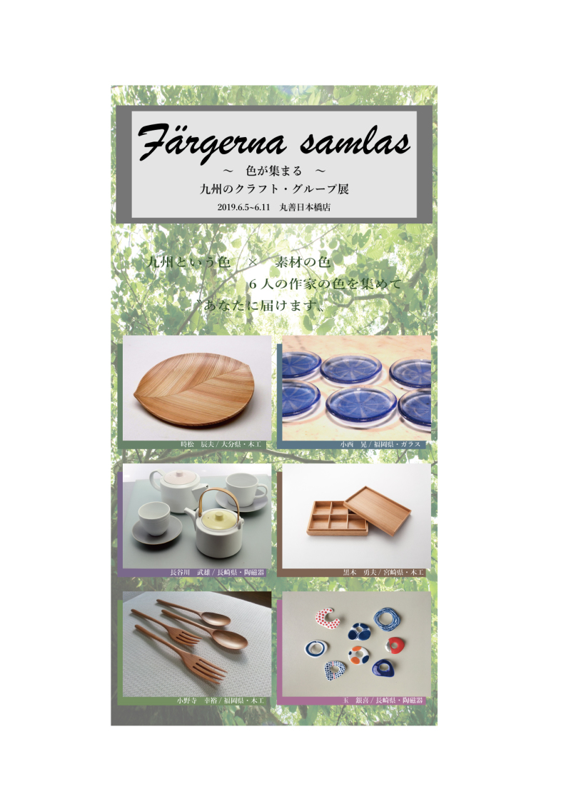 九州の福岡、長崎、大分、宮崎から集まった6人のクラフト作家のグループ展です。それぞれの素材を生かした技術と感性のバランスが醸し出す、心地よい暮らしの器をお楽しみください。