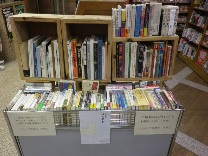 「町家古本はんのき」は「古書ダンデライオン」「古書思いの外」「空き瓶Books」の3人の店主が共同で経営している古書店です。店舗は京都・西陣にあり、アクセスは良いない(失礼!)ですが、人文書、文芸書の品揃えには定評があります。ジュンク堂書店京都店の古本市をきっかけに、西陣の店舗にも足をお運びください。