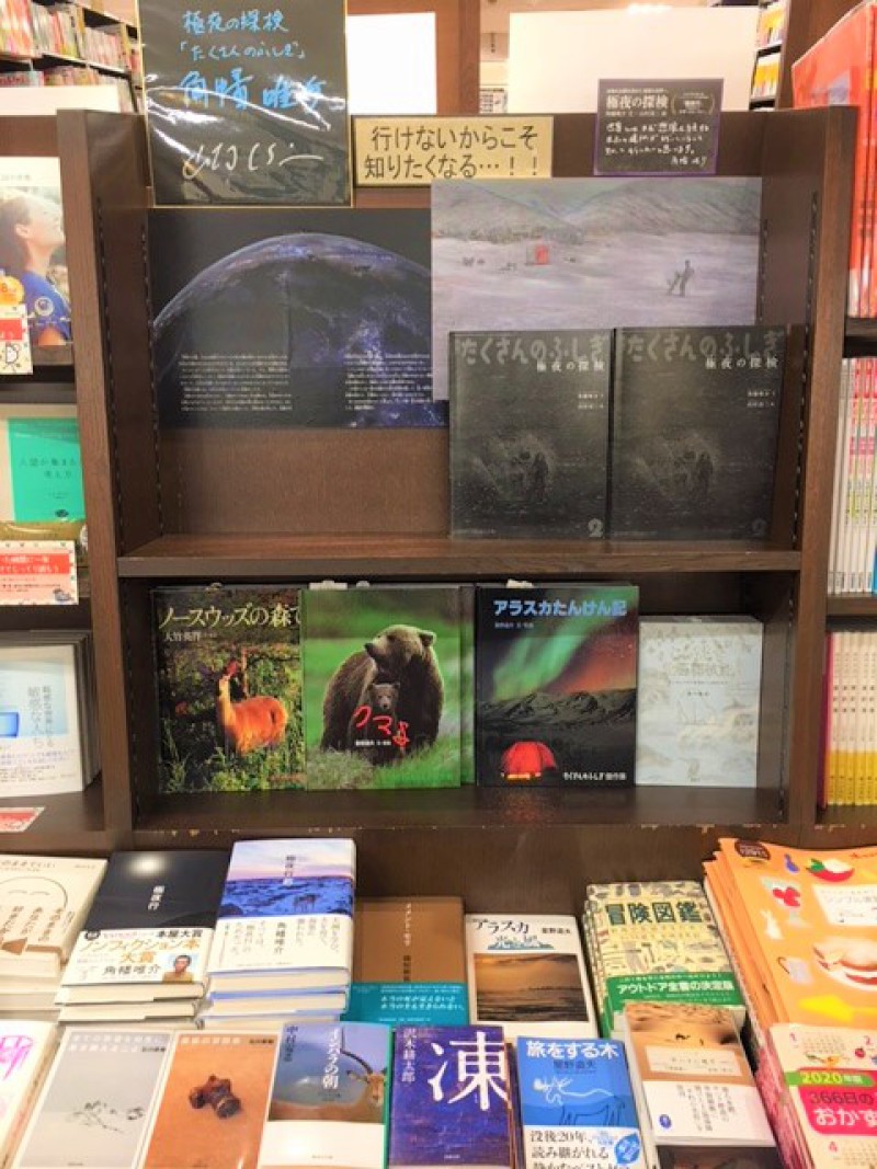 毎月「ふしぎ」をお届けする福音館書店の雑誌『たくさんのふしぎ』。2月号は探検家の角幡唯介さんが描く暗闇の世界への探検物語です。「行けないからこそ、行きたくなる」と題して、角幡さんをはじめ植村直己さん、星野道夫さんなどの作品をレジ前にて展開中です。我々の想像を絶する世界を体験された冒険家たちの作品を通して未知なる世界に想いを馳せてみませんか。