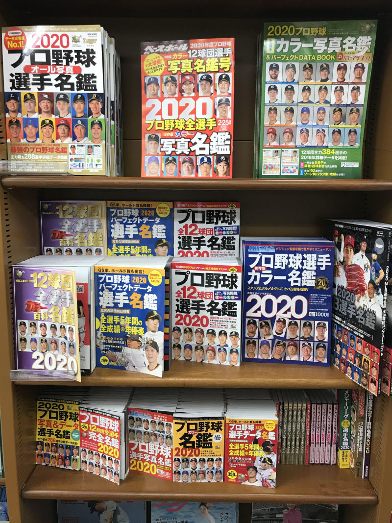 いよいよ球春到来ですね。今年はコロナウィルスの影響で、今後どうなるのか全く予測がつきませんが、それでもペナントレース前のこの時期は、やっぱりワクワクするものです。選手名鑑も続々と入荷中。実は各社ごとにそれぞれ特色があって、読み比べてみるのも楽しかったりします。当店2階スポーツ話題書のコーナーにて展開中です。