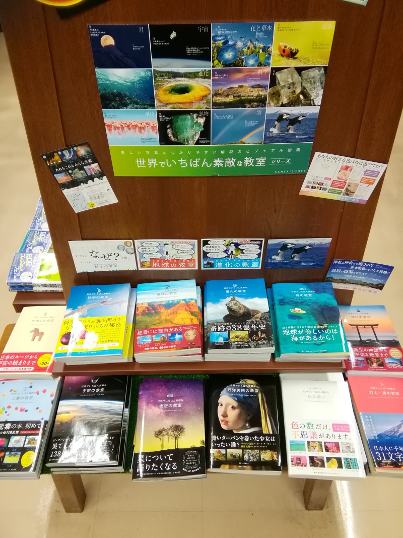 図鑑よりも堅苦しくなく、写真集にしては解説が満載で、それでいてコンパクトで手に取りやすいサイズの『世界でいちばん素敵な教室』シリーズ(三才ブックス刊)。新刊が発売されるたびに綺麗な表紙だなと思っていましたが、こうして並べてみると圧巻ですね。花や昆虫といった自然、百人一首や絵画などの芸術分野、目に見えない元素から広大な宇宙まで、幅広いラインナップを取り揃えています。お子様へのプレゼントにもぴったりです。