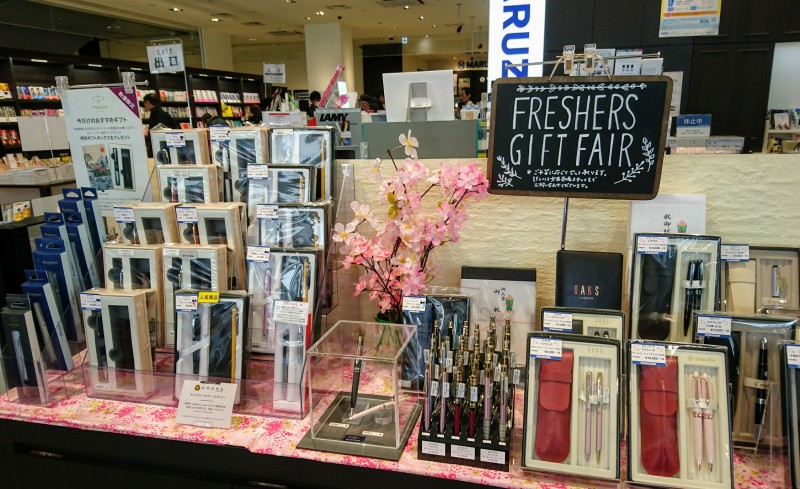 【1階・2階文具売場】この春、入学・進学・就職などで新たな門出を迎える方への贈り物におすすめの筆記具を取り揃えました。ラッピングやお名入れの無料キャンペーンも行っております。その他、名刺入れやIDケース、システム手帳など新生活を始めるために必要な革小物、通勤や通学にぴったりな機能的なバッグなども多数ご用意しております。
