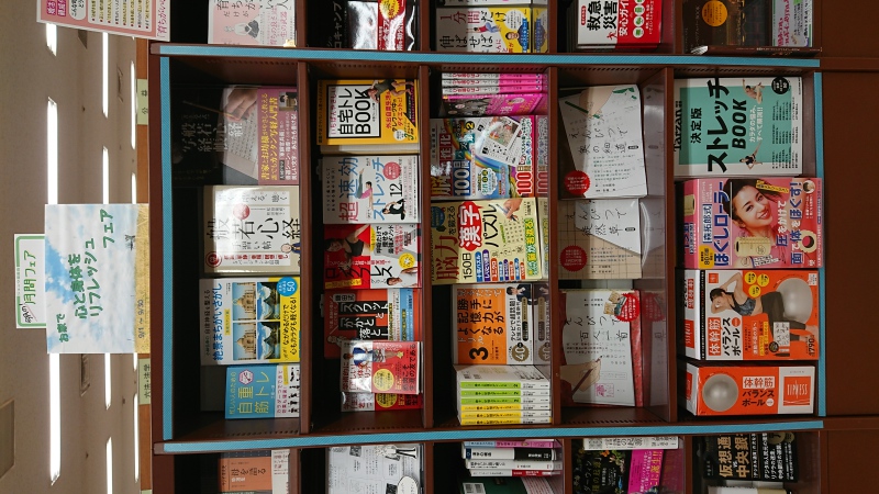 今月は6月に好評だった「梅雨の過ごし方フェア」をバージョンアップ!暑かったり台風や雨だったりでお家で過ごしたいなと思った時に、ぴったりの書籍を取り揃えました。何かに没頭したい方には写経やパズル、間違い探しはいかがでしょうか。身体を動かしたい方には、定番のヨガやストレッチに加えてバランスボールのムック本もございます。