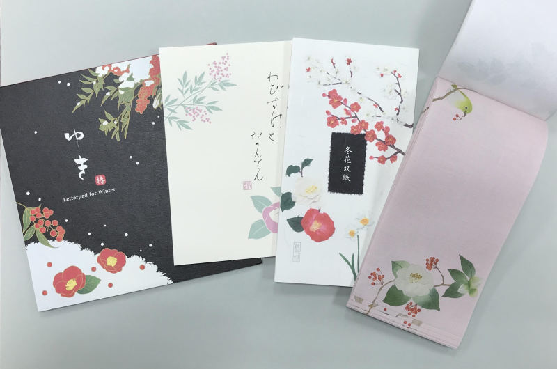 やっと少し肌寒さが感じられる季節になりましたが、早くも冬柄のレターが入荷いたしました。美しい雪の結晶、椿やわびすけといった冬の花の柄など、便箋、封筒、一筆箋を豊富に取り揃えております。なかなか会えない方への季節のご挨拶に、ぜひご利用下さい。※当店ではhontoポイントカードのサービスはいたしておりません。