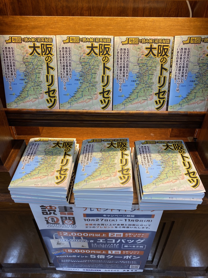 『大阪のトリセツ 地図で読み解く初耳秘話』が地図・ガイドブックでおなじみの昭文社より刊行。梅田一帯の地下迷宮が誕生したわけ、大手私鉄が作ったプロ野球チームと球場…。大阪府の地形・地質、歴史、産業・文化など多彩な特徴と魅力を地図で紹介。知られているようで知られていない大阪府の意外な素顔に迫ります。丸善ジュンク堂書店内では大阪本店で一番売れています(10月27日現在)。