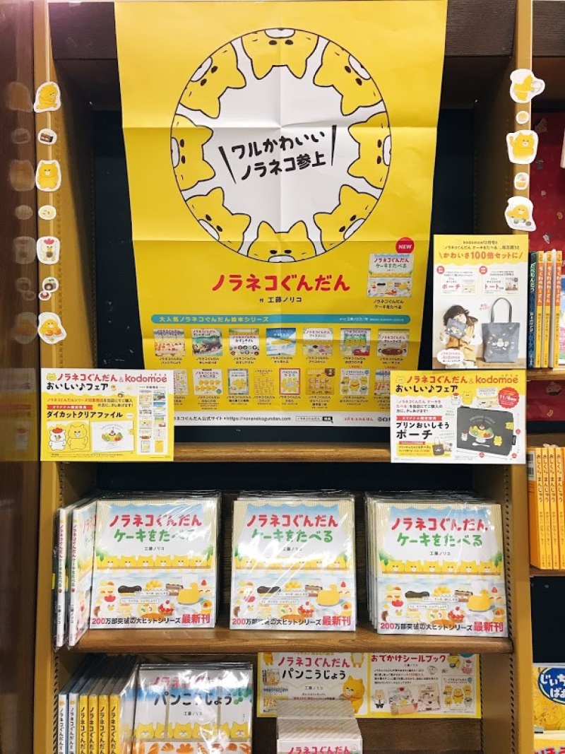 あっちこっちでやらかしちゃう、けど憎めない。なんともいえない表情のノラネコたちに夢中になっちゃう人続出中。大人気ノラネコぐんだん絵本シリーズより新刊「ノラネコぐんだんケーキをたべる」が発売されました。発売を記念して雑誌kodomoe(コドモエ)とコラボしたフェアを開催中です。新刊「ノラネコぐんだんケーキをたべる」をお買い上げいただくと、特典『プリンおいしそうポーチ』が数量限定でついてくる!kodomoe12月号付録の『プリンかんたんだねトート』とセットで持てば、かわいさ100倍!またそれ以外のシリーズの対象商品にはダイカットクリアファイルがついてきます!「ノラネコぐんだん」ファンにはたまらないフェアです。特典は無くなり次第終了となりますので、彼らに会いに来るのはお早めに。B1F児童書2番フェア棚にてニャーニャーと展開中です。