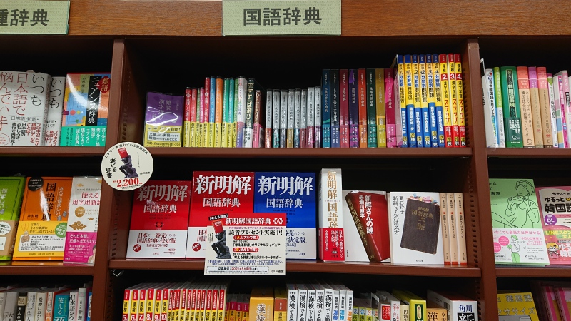 日本で1番売れている国語辞典、「新解さん」こと新明解国語辞典の第8版が発売されました!定番の赤(普通版)に加えて、青版・白版・小型版の4種類、当店も入荷しております。また第8版発売を記念して、オリジナルグッズが抽選で当たるキャンペーンも実施中です。小型版を除く3種類の初回分に入っている、読者カードにてご応募下さい。