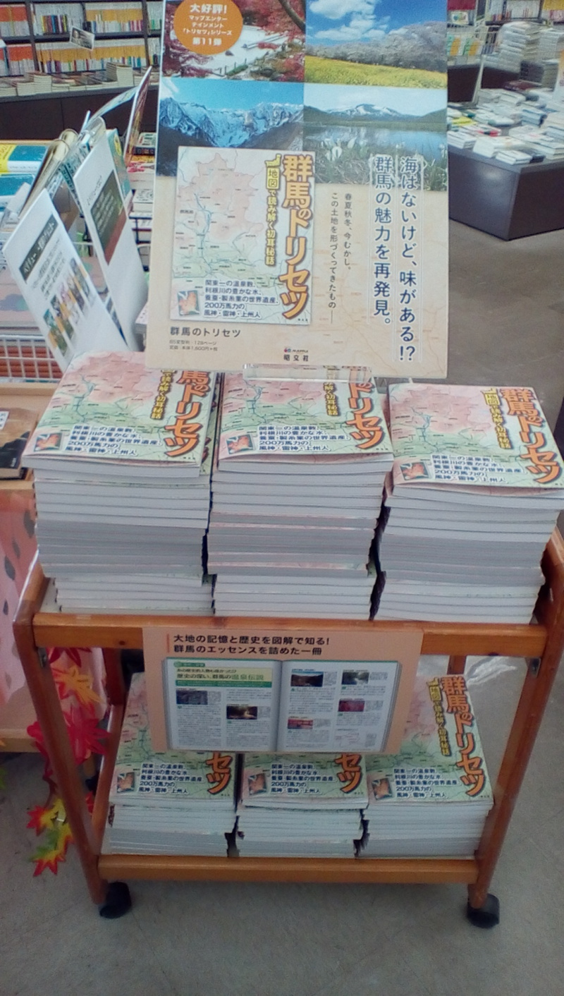 昭文社さんで人気の都道府県「トリセツ」シリーズの第11弾目として「群馬のトリセツ」が発売になりました。「絶景グラビア」+「地図で読み解く群馬の大地」「群馬を駆ける充実の鉄道網」「群馬にまつわる歴史の話」「群馬で育まれた文化や産業」の4章立てで、知っているようで知られていない群馬のさまざまな一面を、地図で読み解いております。ぜひご覧ください。