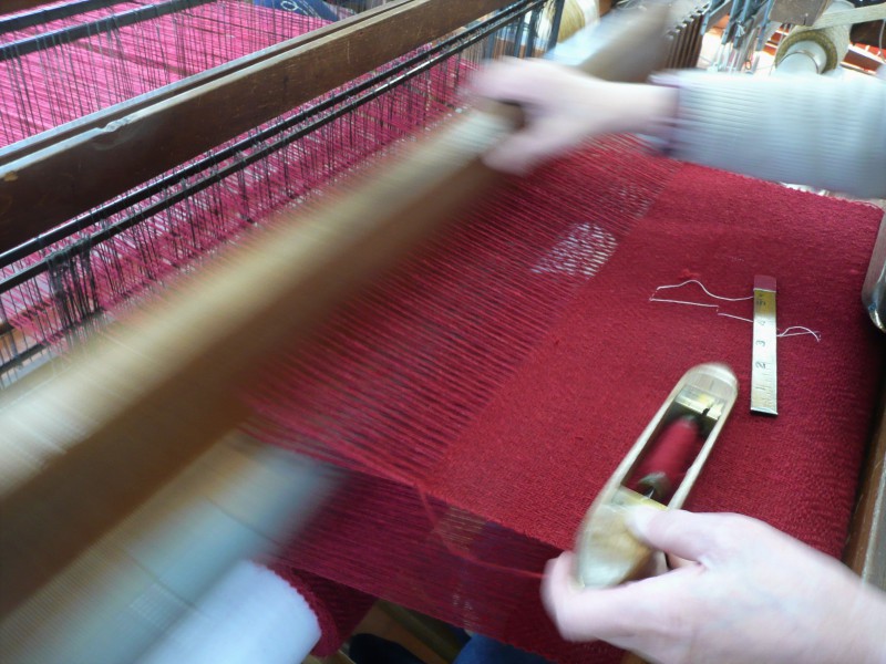 羊毛を手で紡いで糸にし、機(はた)で一枚いちまい織り上げた毛織物「ホームスパン」。