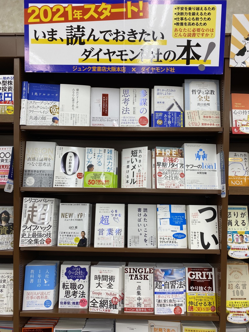 不安を乗り越えるため/決断力を鍛えるため/教養を高めるため・・・あなたに必要なのはどんな読書ですか?ジュンク堂書店大阪本店とダイヤモンド社のコラボフェアを展開中!新しい1年の始まりの1冊をお選びください。