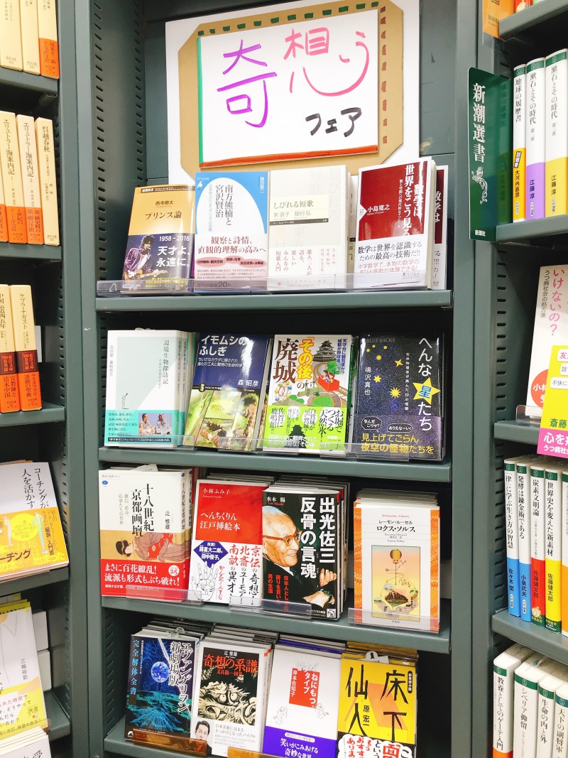 それってホントウに変ですか?ふつうっていったい何なのでしょう?奇抜な考え・想い・行動にまつわる本を新書を中心に集めました。こんな時だからこそ、普通からはみ出した考えを参考に未来へと続く一筋の光を見つけてみてはいかがでしょうか。新書フェア棚でお待ちしてます。