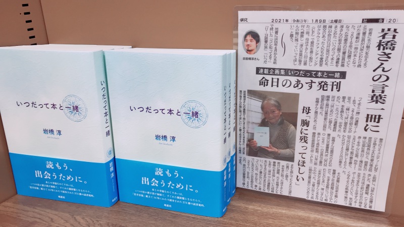 花巻市出身の元書店員岩橋淳さんの、岩手日報紙上で14年にわたり続いた連載が一冊の本となりました。3階郷土の本棚、及び文芸書コーナーにて展開しております。