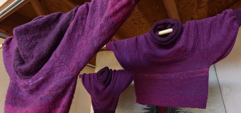 手で紡いだ糸を使ったセーター、ジャケット、マフラー等300点余りを展示即売いたします。