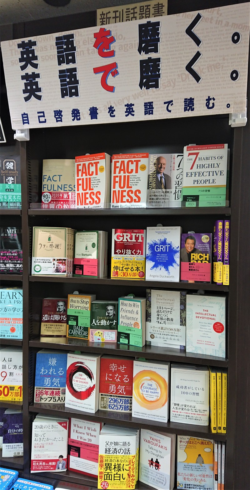 仕事で落ち込んだとき、人間関係に悩んだ時にあなたを勇気づけ、励まし、導いてくれた本はありますか?当店担当者が人生の教科書となるような自己啓発本の名著を洋書とともに展開してみました。先ずは本の内容に興味を持ち、読み進める事が英語力アップに繋がります。ビジネス書話題書コーナーにて展開しておりますので皆様のご来店をお待ちしております。
