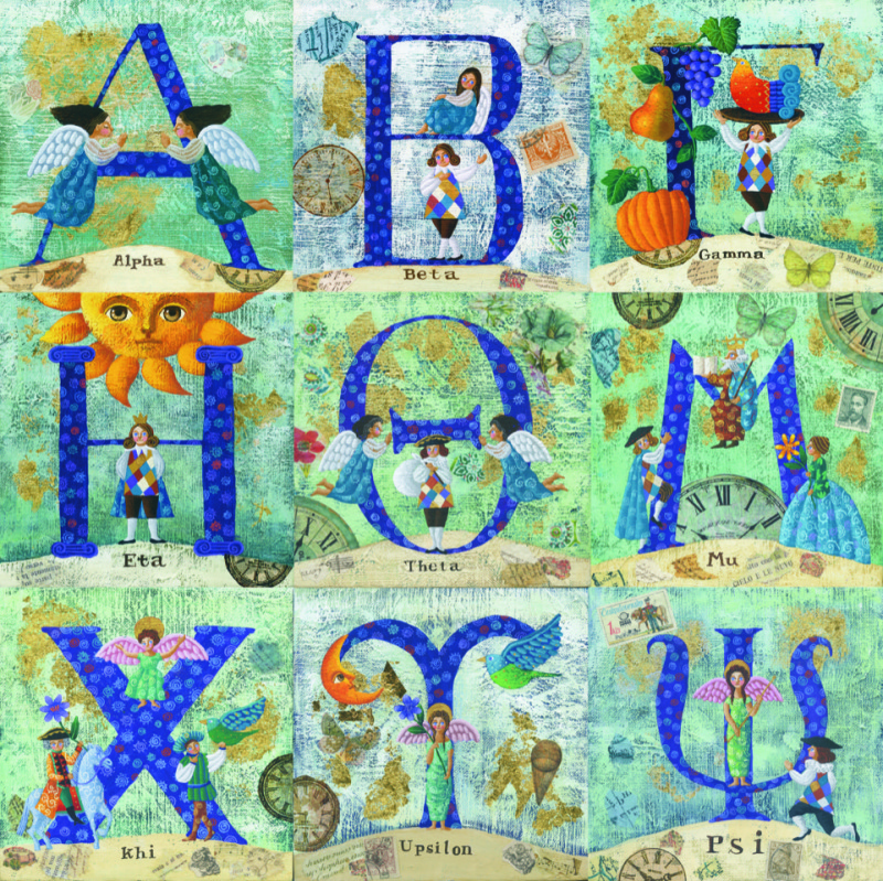 伝説・童話・音楽などをテーマに、緻密な画面構成と色彩豊かな作品は、大人が忘れかけていた夢を思い出させてくれます。今回は古代ギリシャ時代のアルファベットをテーマにした作品など約60点をご紹介いたします。