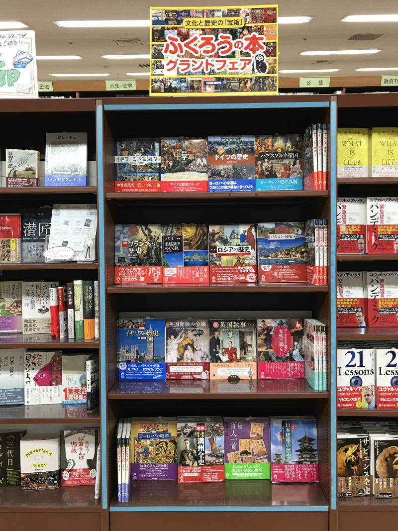 今月は河出書房新社刊行の「ふくろうの本」グランドフェアを開催!この可愛いふくろうのマーク、学校や図書館で目にした方も多いのではないでしょうか?たくさんの写真やイラストで、幅広い世代に分かりやすく教えてくれる大定番のビジュアルガイド。ハプスブルク家って?イギリスのティータイムの歴史って?知っているとちょっと自慢できる知識がたくさん詰まっています。お子様へのプレゼントにも最適です。