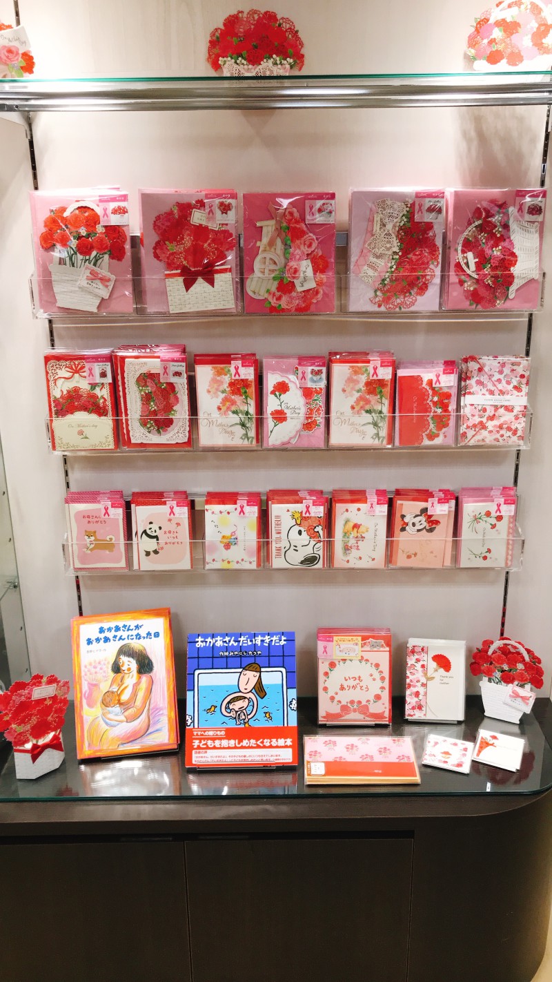 当店では、絵本と一緒に母の日のメッセージカードのコーナーを作りました。スタンドするメッセージカードは、飾っておけるほど華やかです。ぜひ、この機会にご利用下さいませ。