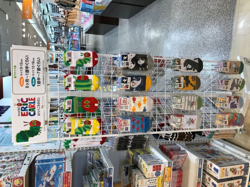 児童書コーナーにて、「はらぺこあおむし」や「ねないこだれだ」「きんぎょがにげた」などなど、かわいいえほんのキャラクターをモチーフにした靴下の取り扱いをスタートしました。9~12センチのベビーサイズ、13~18センチのキッズサイズ、22~24センチのレディースサイズがございます。えほんとセットにしてプレゼントするのはもちろん、親子でおそろいも可愛いです。また、保育士さんなら子供たちに大人気になること間違いなし!期間を決めずに長く展開いたしますので、お立ち寄りの際にご覧くださいませ。