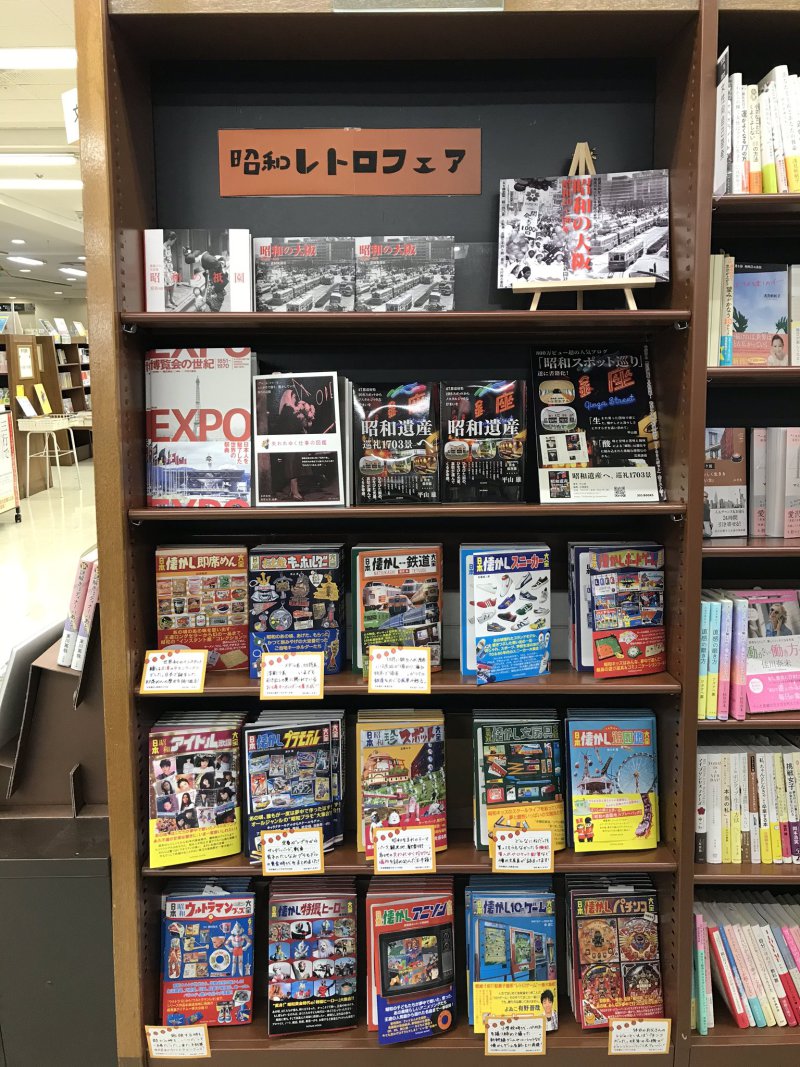 昭和の大阪や祇園を鮮やかに切り取った写真集。ドライブインやモーテルなど、あの頃の景色が残る場所の記録。懐かしいあのカップ麺やキーホルダー、レコード、アニソン……昔懐かしい昭和にスポットを当てた書籍をまとめたフェアを開催中です。