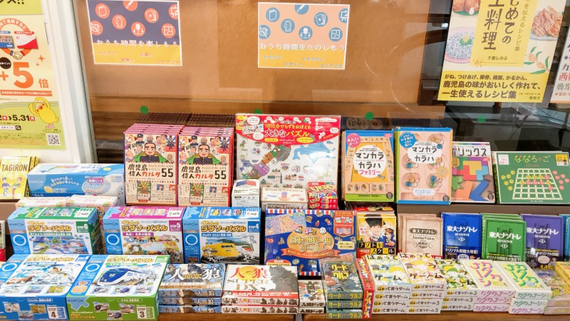 九州南部の梅雨入りは5月11日でした。平年・昨年と比べて19日も早く、統計史上2番目に早い梅雨入りです。しかも近年と比べて雨量が多い気がします。自粛生活と梅雨で気が滅入りがちですが、これを逆手に取って思い切りおうち時間を楽しみませんか?家族で楽しめるゲームや脳トレクイズを中心に学びや読書の啓発書もご用意し、おうち学習のアシストもしております。5階からのエスカレーター上り口に展開いたしました。ぜひお立ち寄りくださいませ。