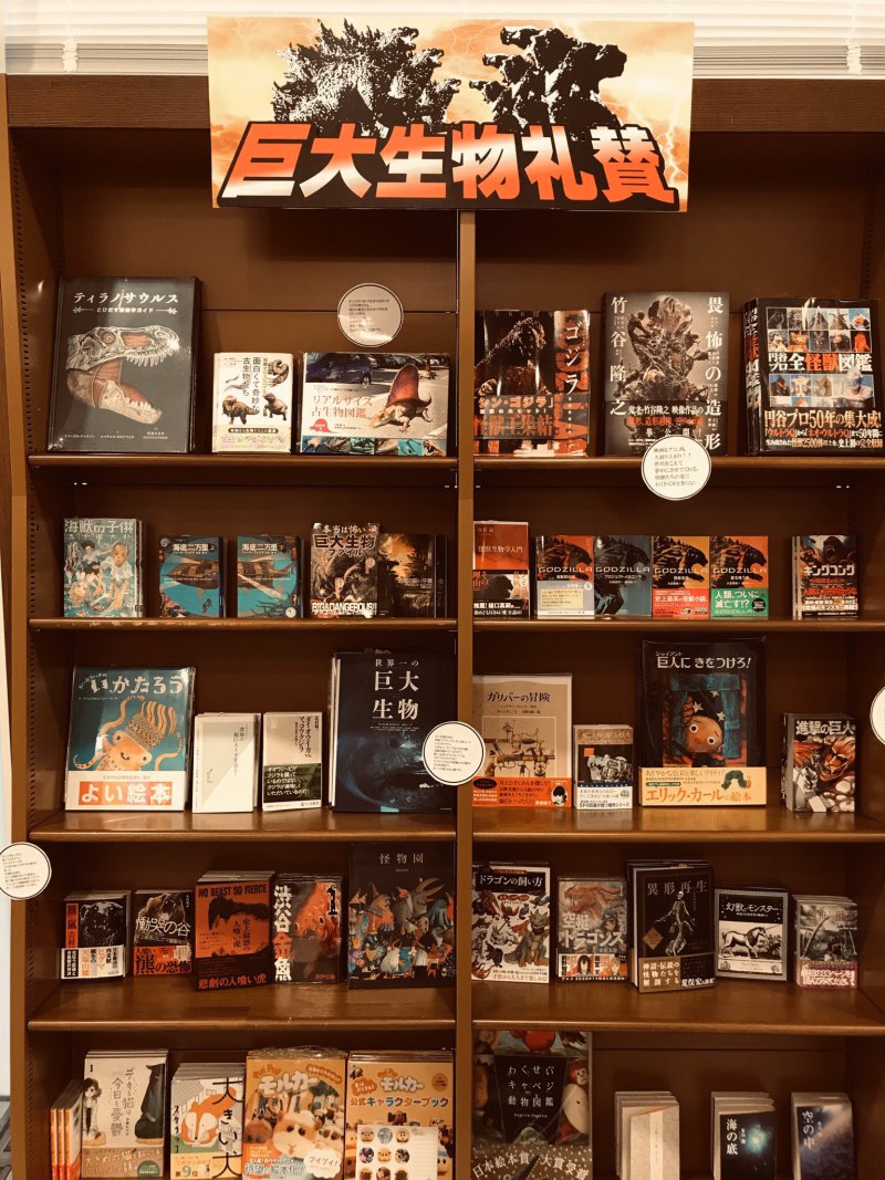 巨大生物への愛をこめて、一階壁面フェアコーナーにて展開中です。