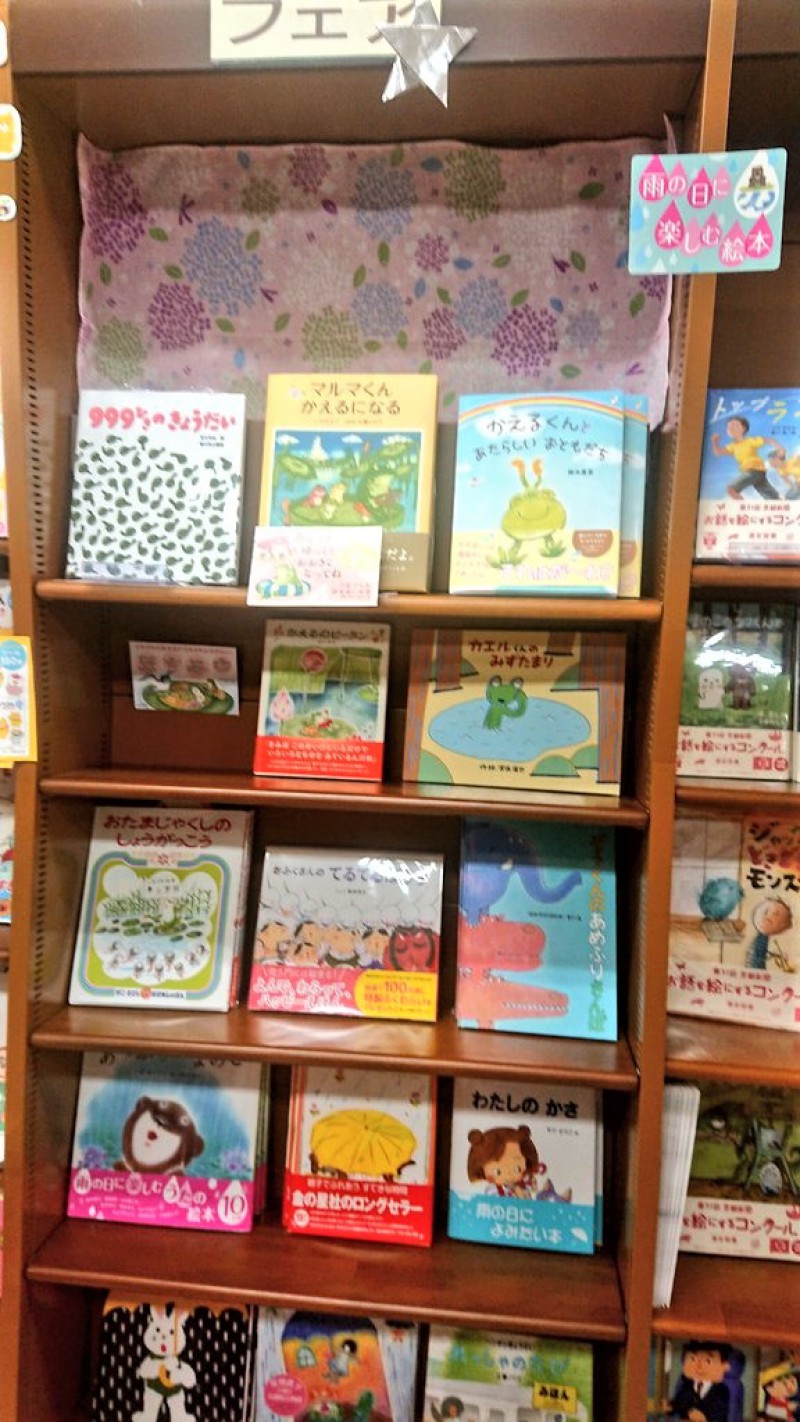 雨にかかわる面白くて、かわいい本を児童書コーナーで集めています。