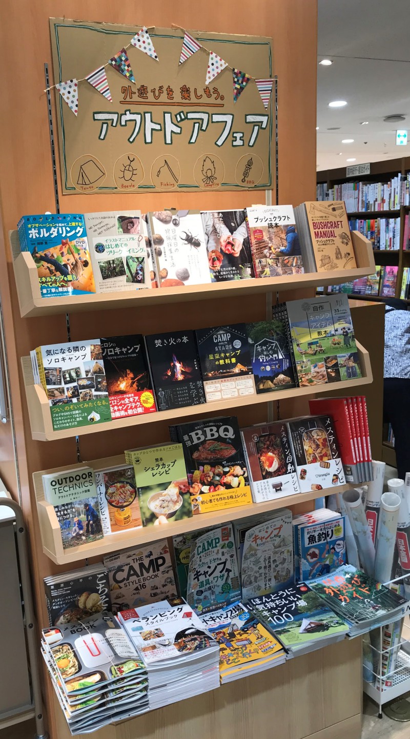 7月に入りじわじわと暑くなってきました。夏といえばキャンプにBBQに…とにかく外で遊びたい!ということで『外遊びを楽しもう!アウトドアフェア』を開催中です。一言にアウトドアといえど焚き火に釣りに料理に星空…と楽しみ方は数え切れません。計画を立てているだけで楽しくなってきます。ボルダリング、釣り、キャンプ、昆虫採集にいたるまでいろんな外遊びの本を集めました。ぜひ今年の夏の計画に活用してください。