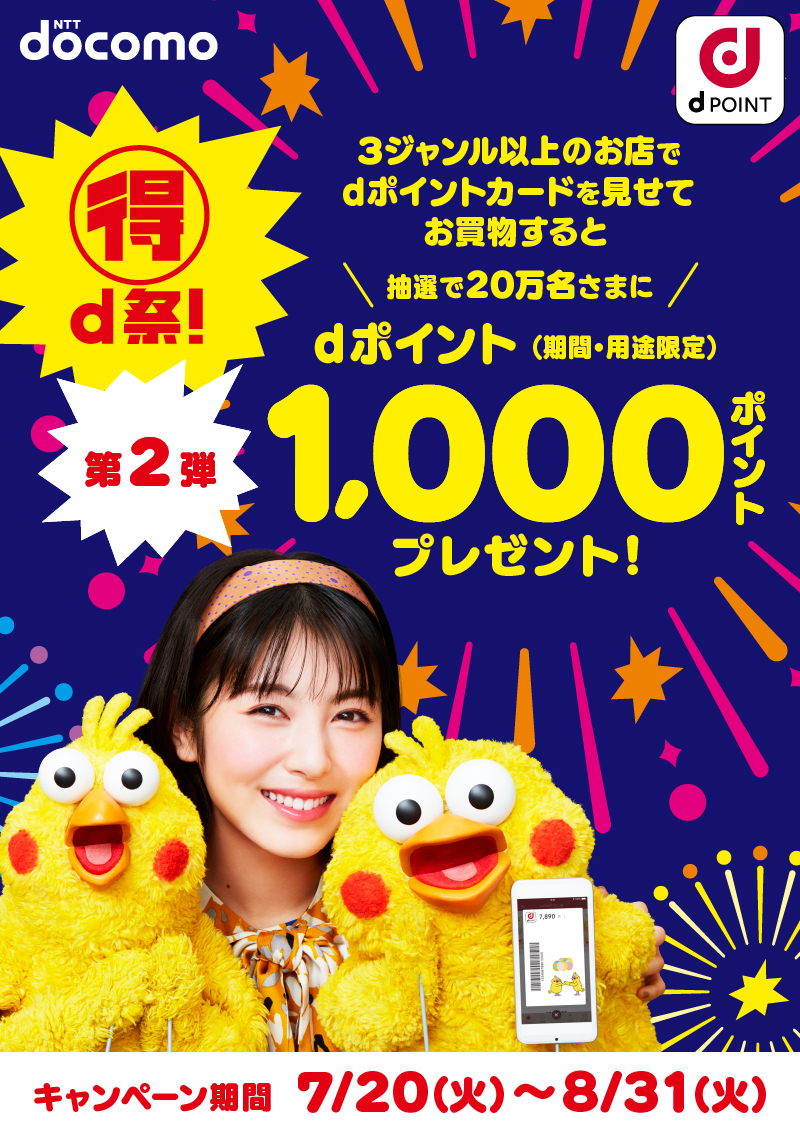 【マル得d祭!第2弾】dポイントスタンプラリー 抽選で20万名に1000ポイントプレゼントキャンペーン