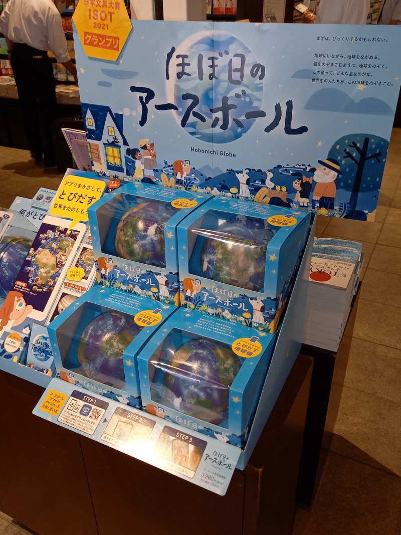 専用のアプリをダウンロードしてスマホなどをかざすとリアルタイムで変化する地球の「雲」「雨」「気温」をご覧いただけたり、学びのあるものから親子で遊べるものまで19種のコンテンツを楽しむことができるほぼ日アースボール。この度、第30回日本文具大賞ISOT2021で機能部門グランプリを受賞しました。日本橋店2Fレジ前で販売しております。さまざまな地球の姿をお楽しみください。