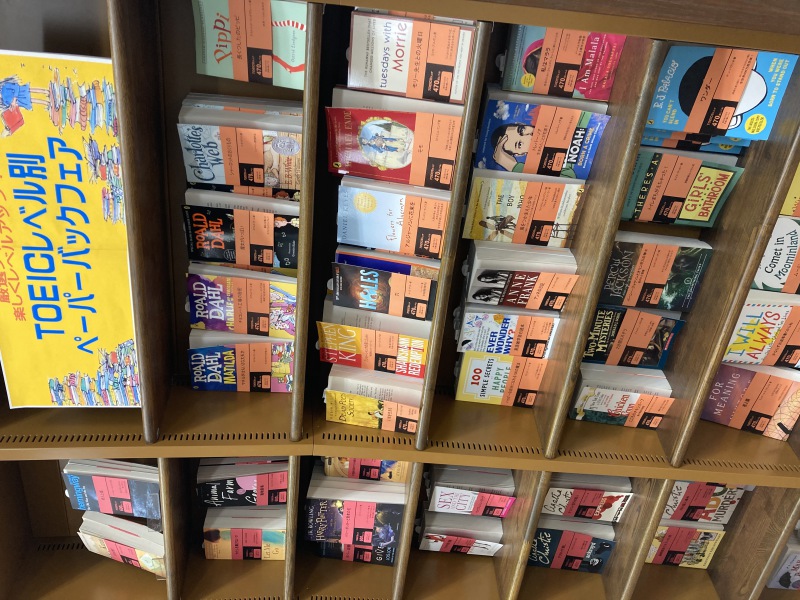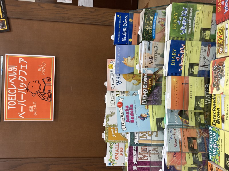 TOEICのレベル別ペーパーバックフェアを開催中です。児童書からネイティブレベルまで自分の英語力に合わせてお選びいただけます。ミステリーやノンフィクション、ロマンスやファンタジーなど、興味のある分野の本が見つかるはず!コミックもありますよ。