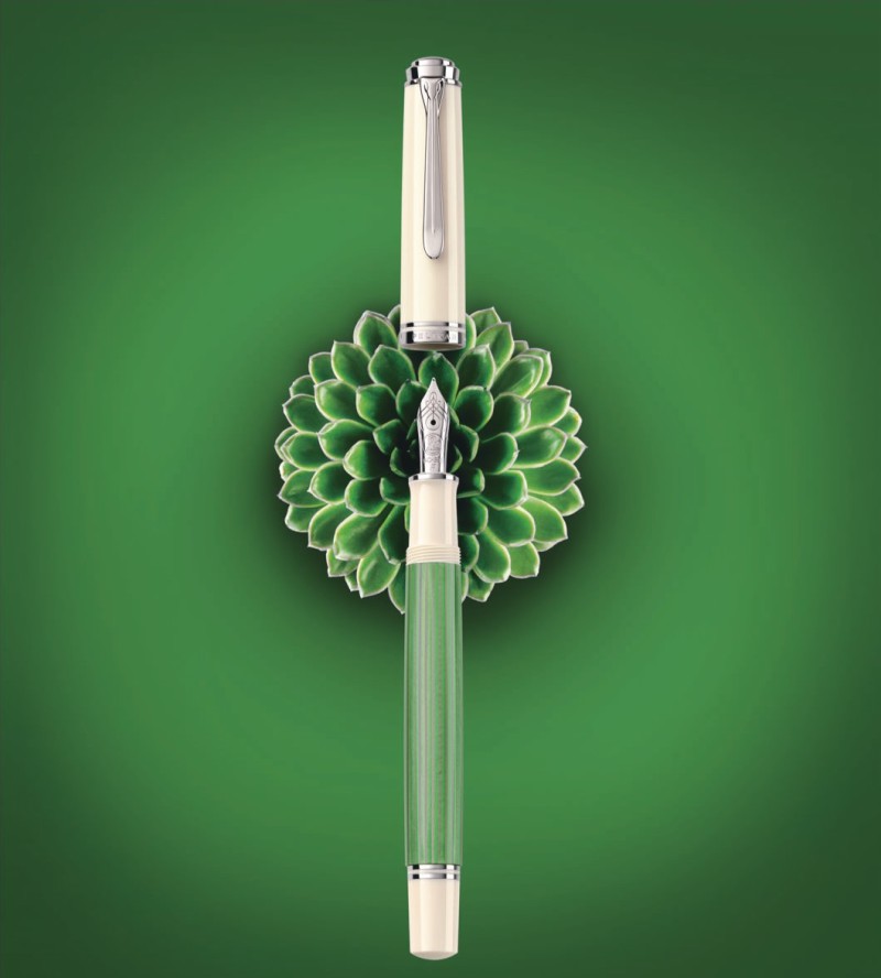 ペリカンの人気モデル、スーベレーンM605スペシャルエディションに最新カラーが登場しました。生い茂る新緑を連想させるグリーンはホワイトパーツとの相性によって、躍動的な印象に仕上がって、あなたの手元を彩ります。【価格】万年筆:税込¥49,500(ペン先ロジウム仕上14金EF・F・M・B) B1万年筆売場