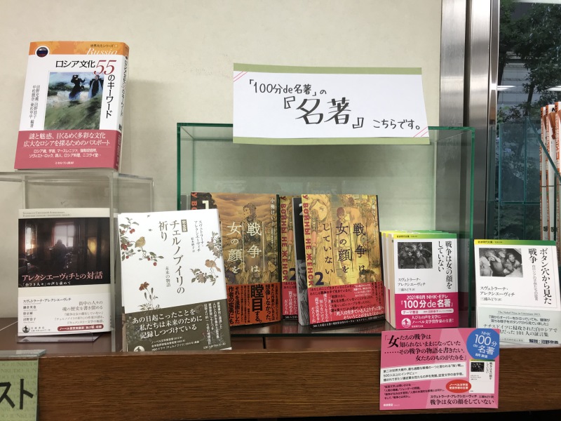 放送開始から10周年を迎えたNHKの人気番組「100分de名著」。その中で取り上げられている『名著』、番組テキストの棚の上にてご紹介しています。同じ作者の書籍、時代背景が分かる参考書籍など、その時々に合わせて関連作品も取り揃えていますので、深堀りしたい方におすすめです。名著のお供にいかがでしょうか?