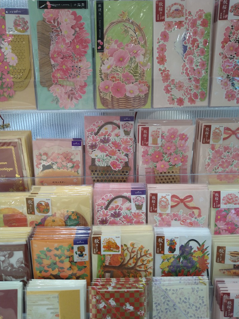 8月も下旬を迎え、虫の声に秋を感じる時期になりました。新たな季節の訪れに際し、なかなか会えないあの人に連絡のひとつでも差し上げたい、そんな時は秋柄カードでお手紙を書いてみませんか。コスモスの花や十五夜の月、秋の味覚さんま や、りんご柄など、秋モチーフのカードをご用意しております。大切な方へのお便りにぜひご利用ください!