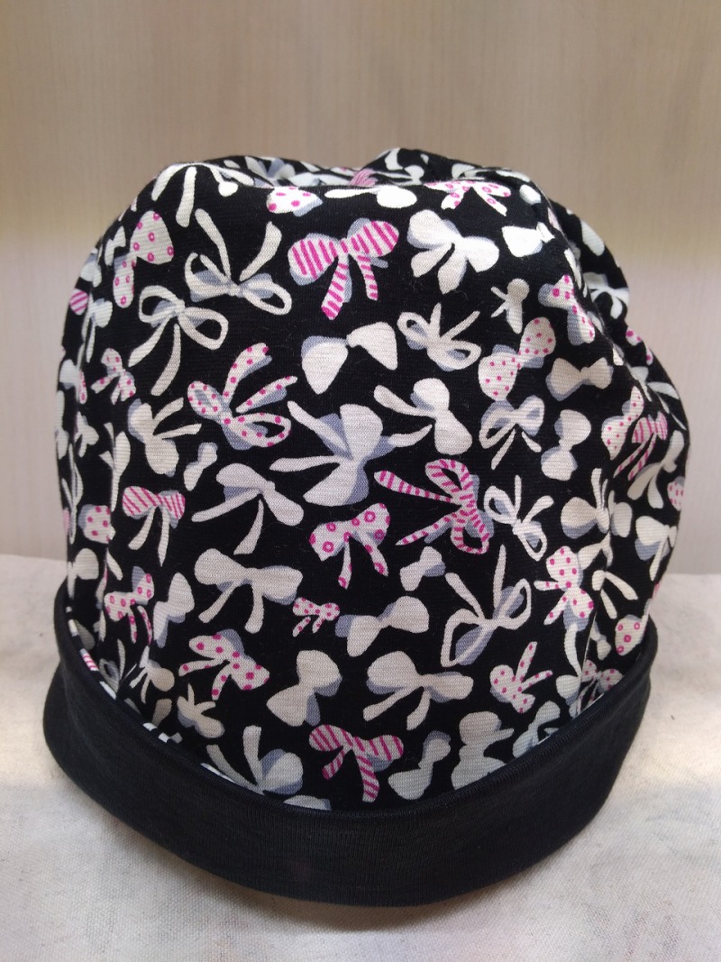 オリジナル帽子【帽子工房MURAI】素材と被り心地に配慮して製作したオリジナル帽子。さり気ない上品さで被ったときに素敵に見える帽子です。写真の作品は天然素材のカットソー生地を使用。無地と柄の組み合わせで両方使えます。伸縮性があり、気になるヘアスタイルの乱れ等をキレイにカバーできます。