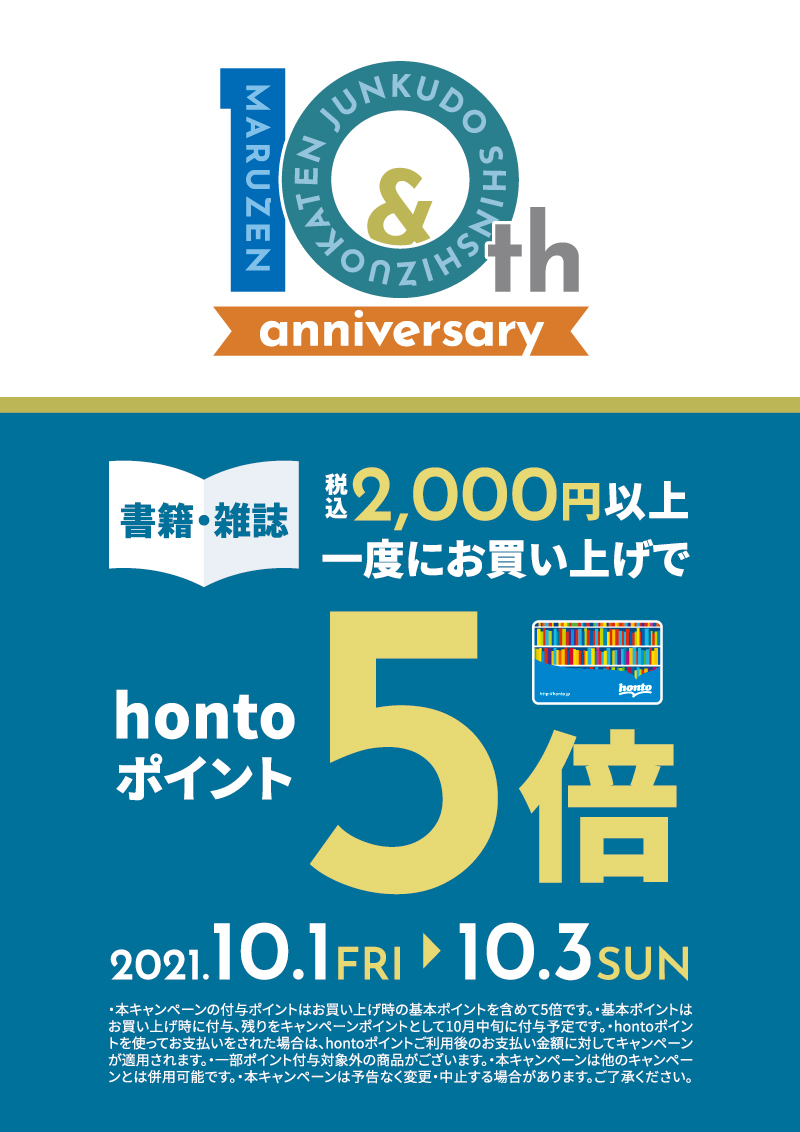 10周年記念 hontoポイント5倍キャンペーン(新静岡店)