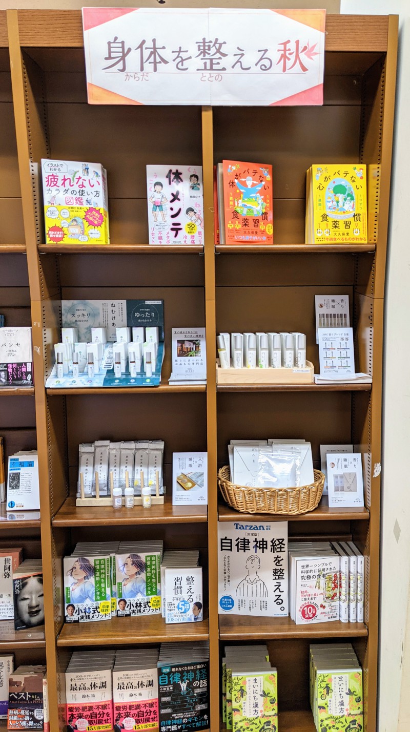 9月に入り暑さも落ち着き、そろそろ夏の疲れが出てくる時期です。MARUZEN&ジュンク堂書店渋谷店ではそんな疲れを癒し体を整える書籍とアロマをご用意しました。自立神経を整えるための生活の仕方を解説したもの、薬膳を基にした健康的な暮らしを提案したもの、科学的な観点から鬱や不眠を解説したものなど、多様な見方から身体を整えるために書かれたタイトルを揃えました。また、眠りの専門店「市田商店」が作った枕用のフレグランスやアロマオイルなどもご用意。科学香料や合成香料を使用していない優しい香りは心地よい眠りを誘います。香りのサンプルご用意していますので、ぜひ店頭でお確かめください。