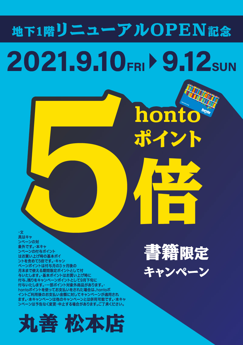 地下1階リニューアルOPEN記念 hontoポイント5倍キャンペーン(松本店)