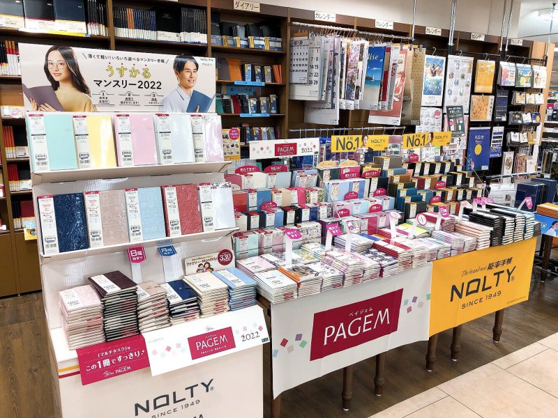 話題書コーナーにて、2022年の手帳・ダイアリー・家計簿の展開を開始しています。日本能率協会のNOLTY、高橋書店、博文館新社、ダイゴーなどから発行されている定番のビジネス手帳や日記の他、カジュアルな物まで品揃え豊富に展開しています。お客様のライフスタイルに最適な、お気に入りの1冊が見つかるはず。ぜひこの機会にご来店ください。