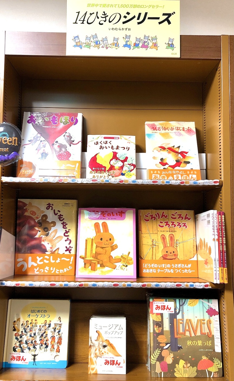 朝晩は秋らしくだいぶ涼しく感じられるようになってきましたね。児童書コーナーフェア棚では、子どもたちに大人気の「おいもほり」や「どんぐり」の絵本、きれいに赤く色づいた落ち葉の本、芸術の秋にぴったりな音楽の絵本、そしてちょっと怖いけどドキドキ楽しいハロウィンの絵本などを集めて展開しています。ご来店の際には、絵本でも秋を感じてみてください!