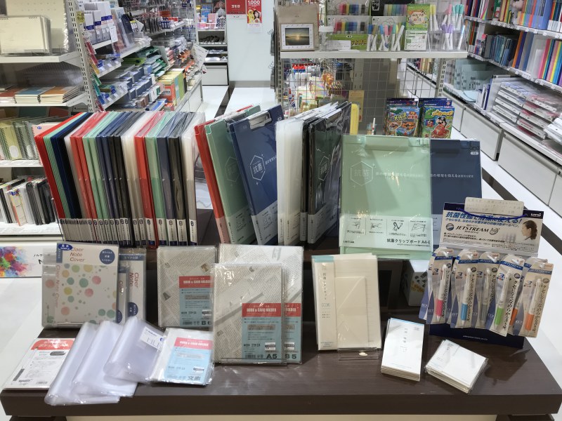 今回は抗菌グッズフェアのご案内です。ボールペンやクリップボード、ノートカバーやブックカバーなど、普段の生活でよく使う文具の抗菌仕様のシリーズが登場しました!抗菌とは、菌が増えにくい環境を作って菌の増殖を抑えることだそうです。お仕事や学校でいつも使う文具だからこそ、清潔さや衛生が気になってしまうものですよね。そんな中で登場した抗菌仕様のアイテムたち、とても便利なものでは無いでしょうか。ぜひチェックしてみてくださいね!