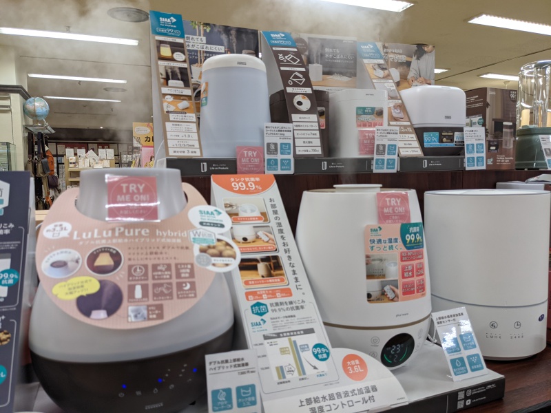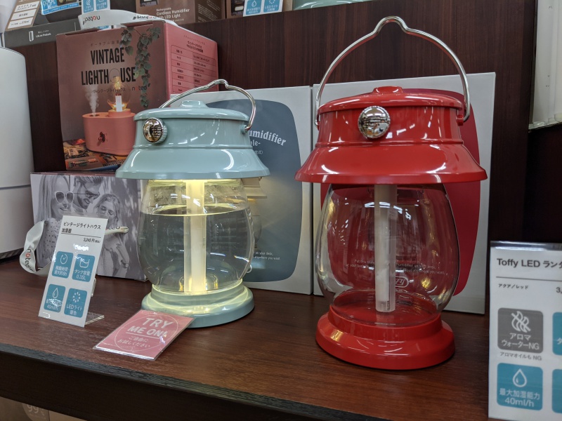 昨シーズンご好評頂きました加湿器、今シーズンも入荷いたしました。タンクが抗菌仕様のものや倒れても水がこぼれないつくりのもの、リモコンで操作ができるものや噴射量が調節できるものなどバリエーション豊かに取り揃えております。中でもおすすめはレトロなダスティカラーが可愛らしいランプ調のお品とランタン調のお品。ランプ調の一台はアロマオイルを入れることが可能で、加湿機能に加えアロマの香りと柔らかな灯りが癒しの効果ももたらしてくれそうです。アロマウォーターもご用意しておりますのであわせてのご購入もおすすめです。店頭では実演もしております。本格的な乾燥の季節が始まる前にぜひ実際にお品をお確かめください。