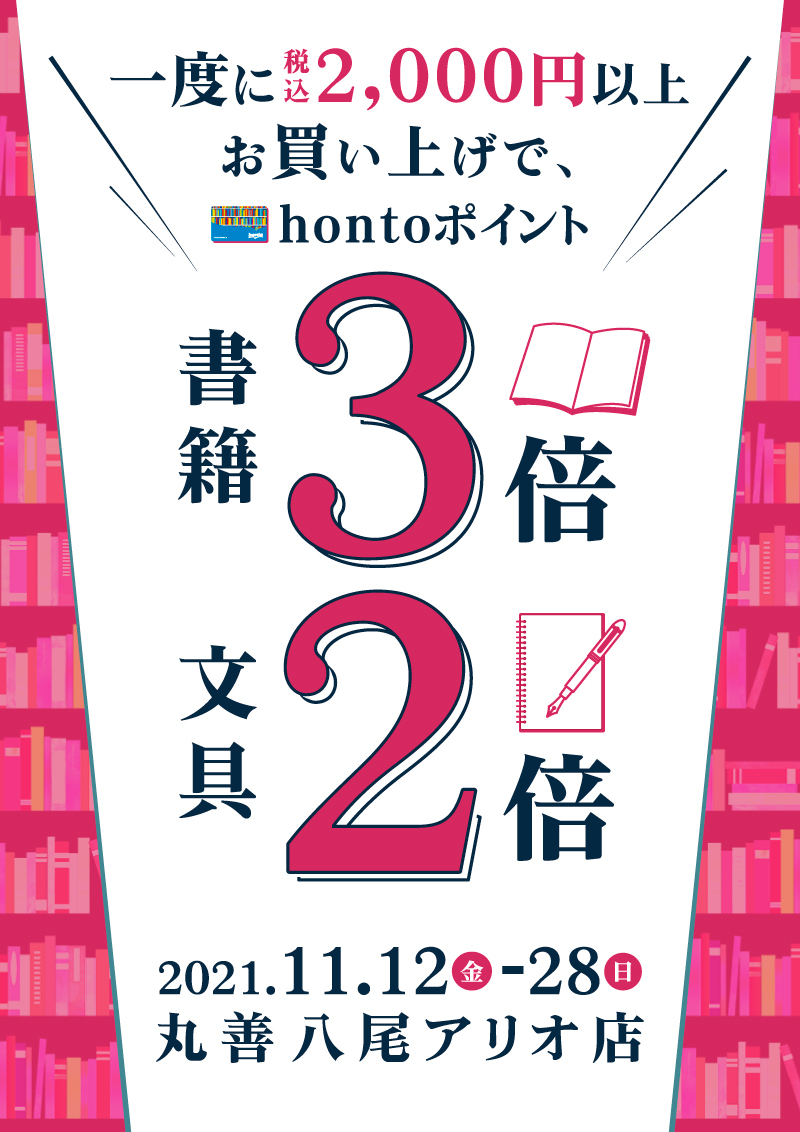 2,000円以上お買い上げで書籍3倍・文具2倍キャンペーン(八尾アリオ店)