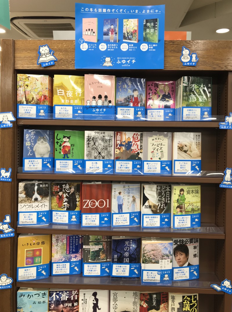 集英社文庫の冬の一冊フェア「ふゆイチ」がスタートしました!冬仕様のよまにゃが目印。いま読んでおきたい1冊や、注目の話題作が目白押し。冬はのんびり読書をどうぞ。対象商品を紹介する小冊子も配布中です。ぜひご覧ください。
