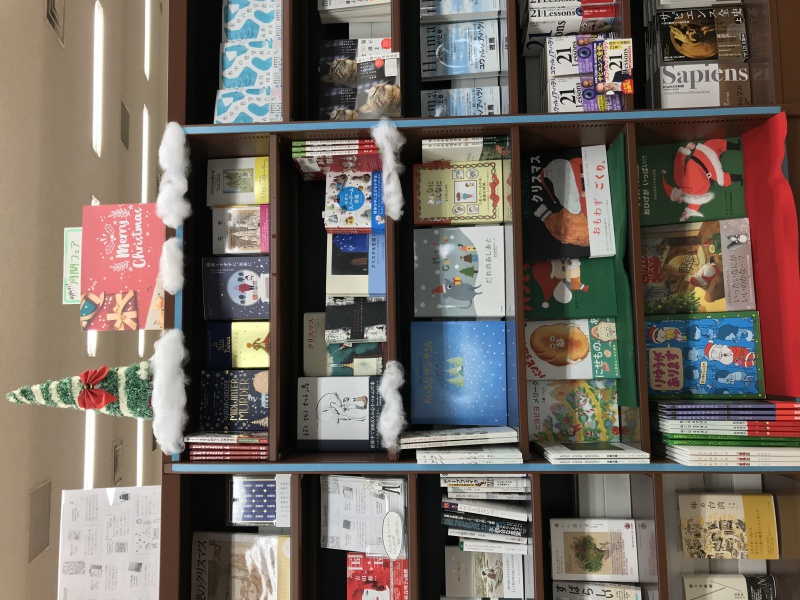 今月は、毎年恒例のクリスマスフェア。定番の『星の王子さま』や、話題になった『ぼく モグラ キツネ 馬』、スノードーム図鑑など、お子さんはもちろん、大人も楽しめるクリスマス関連書籍を集めました。ラッピング包装も承っておりますので、プレゼントにいかがでしょうか?また、当店は今年もブックサンタに参加しております。ご希望のサンタさんは、スタッフまでお気軽にお尋ね下さい。