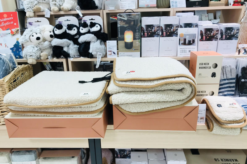 冬の寒さに備えて、一味違うあたためグッズはいかがでしょうか。USBで充電でき手軽にどこでも使えるあたたかブランケットやネックウォーマー、電子レンジで加熱できる可愛いぬいぐるみ型ゆたんぽ、タッチパネルが使える手袋など、最新のユニークグッズを取り揃えております。ぜひこの機会にお越し下さいませ。