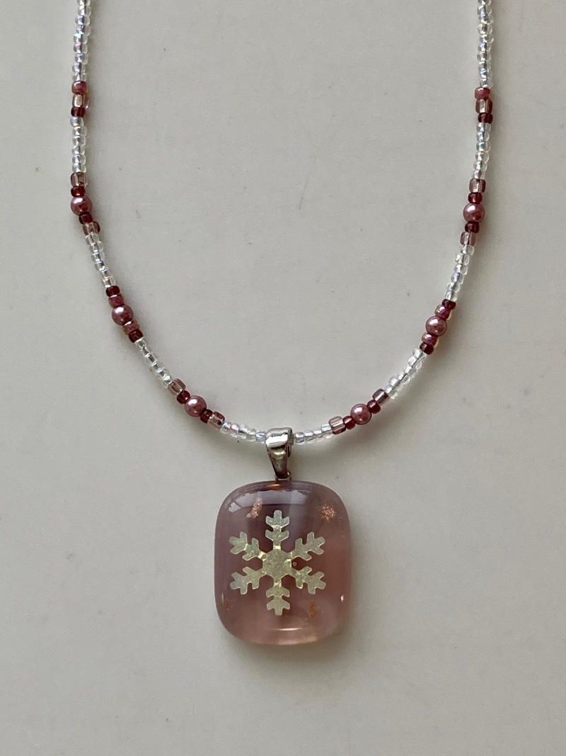 ガラスクラフト【パウダーシュガー】色々な技法を用いた色鮮やかでバラエティー豊かなガラスクラフトです。季節を彩る様々なガラス作品をご紹介いたします。写真の商品は、型で抜いた銀箔をガラスの間に挟んで溶かした輝きのあるペンダントになります。他のお色や違うモチーフもご用意がございます。